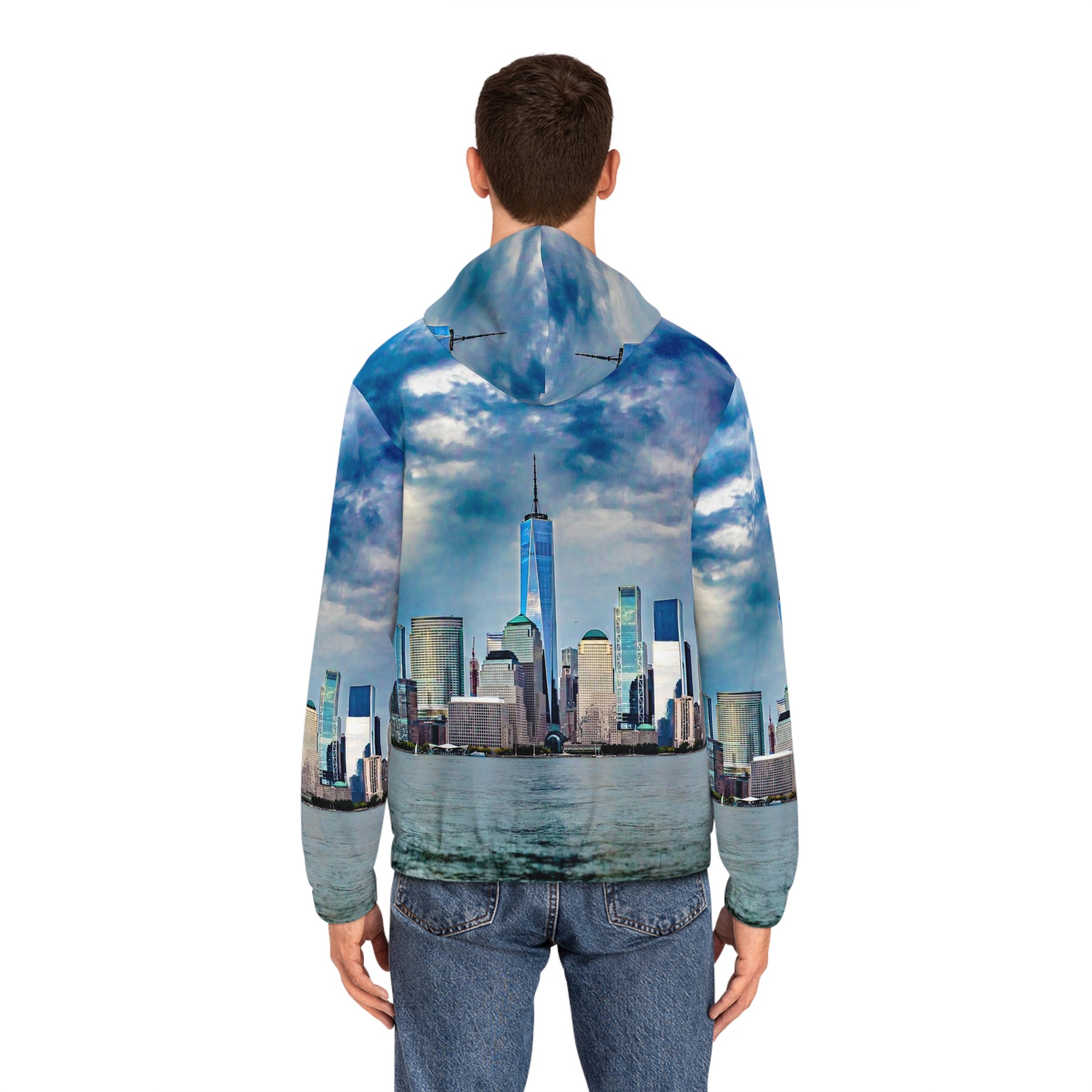 City Skyline Full‑Zip Hoodie — Waterfront Skyline Print Jacket
