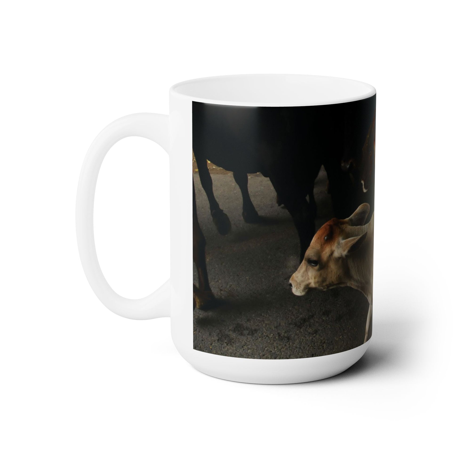 Elegant 15oz Ceramic Coffee Mug printed with a beautiful cattle image.