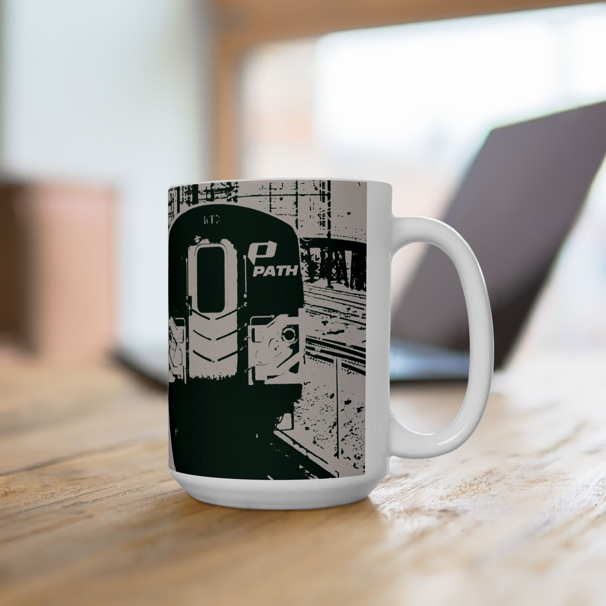 Elegant 15oz Ceramic Coffee Mug printed with a beautiful train image.