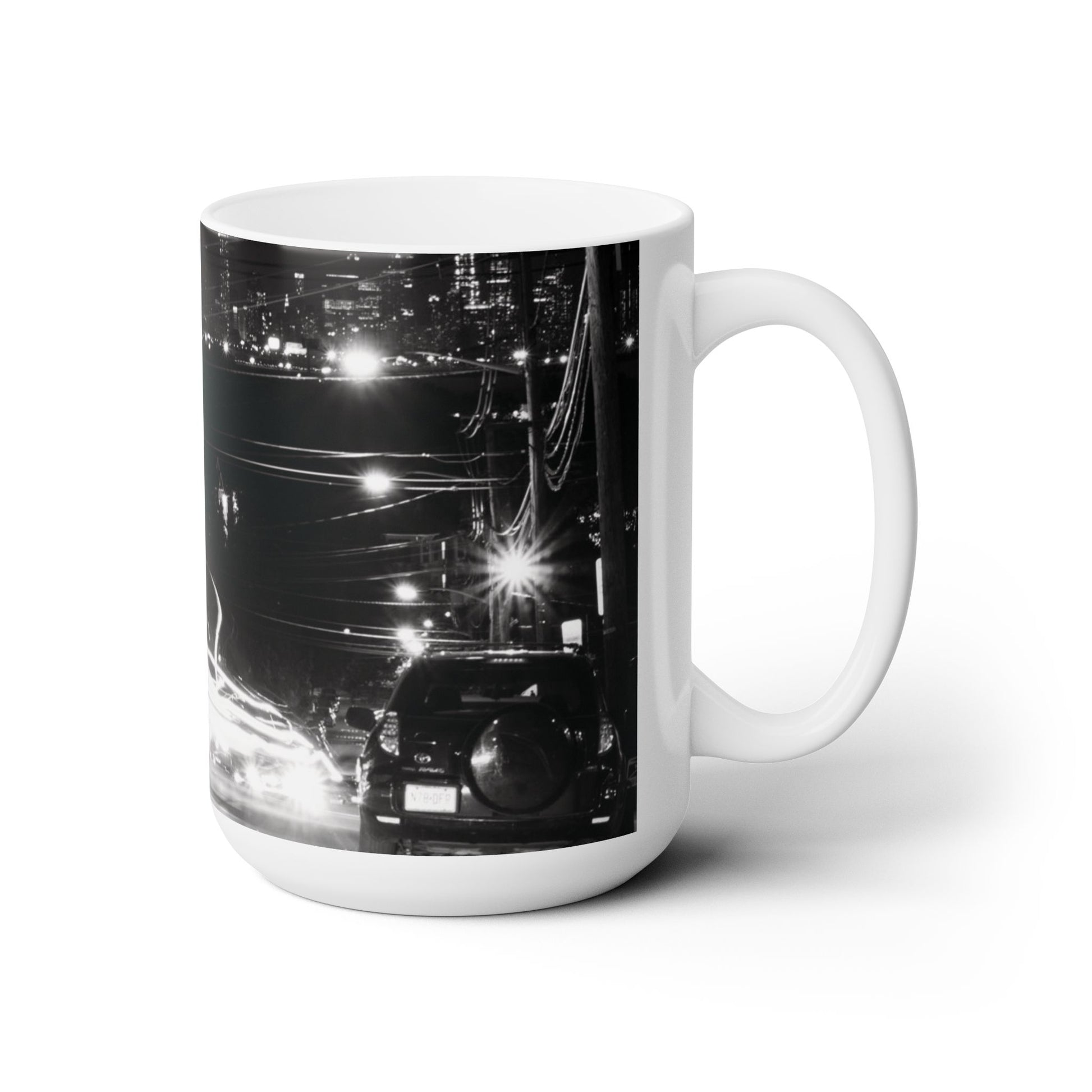 Elegant 15oz Ceramic Coffe Mug Printed With Beautifull Night Urban Photo.