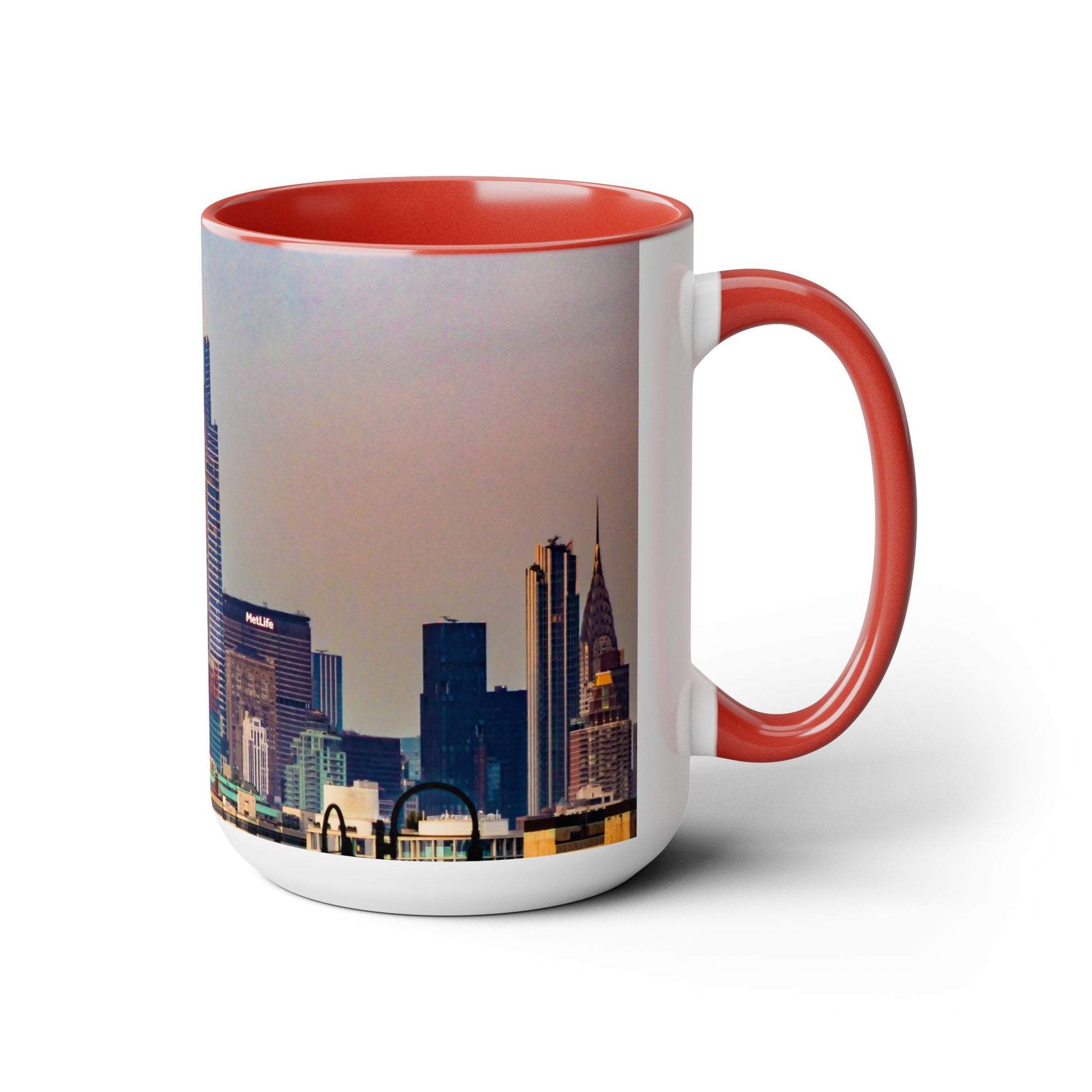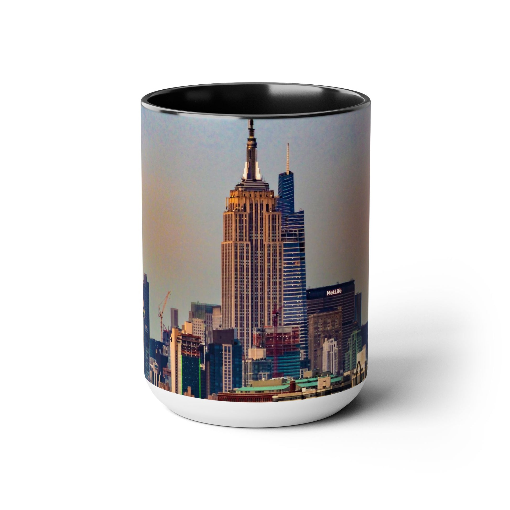 Two Tone 15oz Ceramic, Coffee Mug, Printed with a High-Res Elegant Image of New York City View.