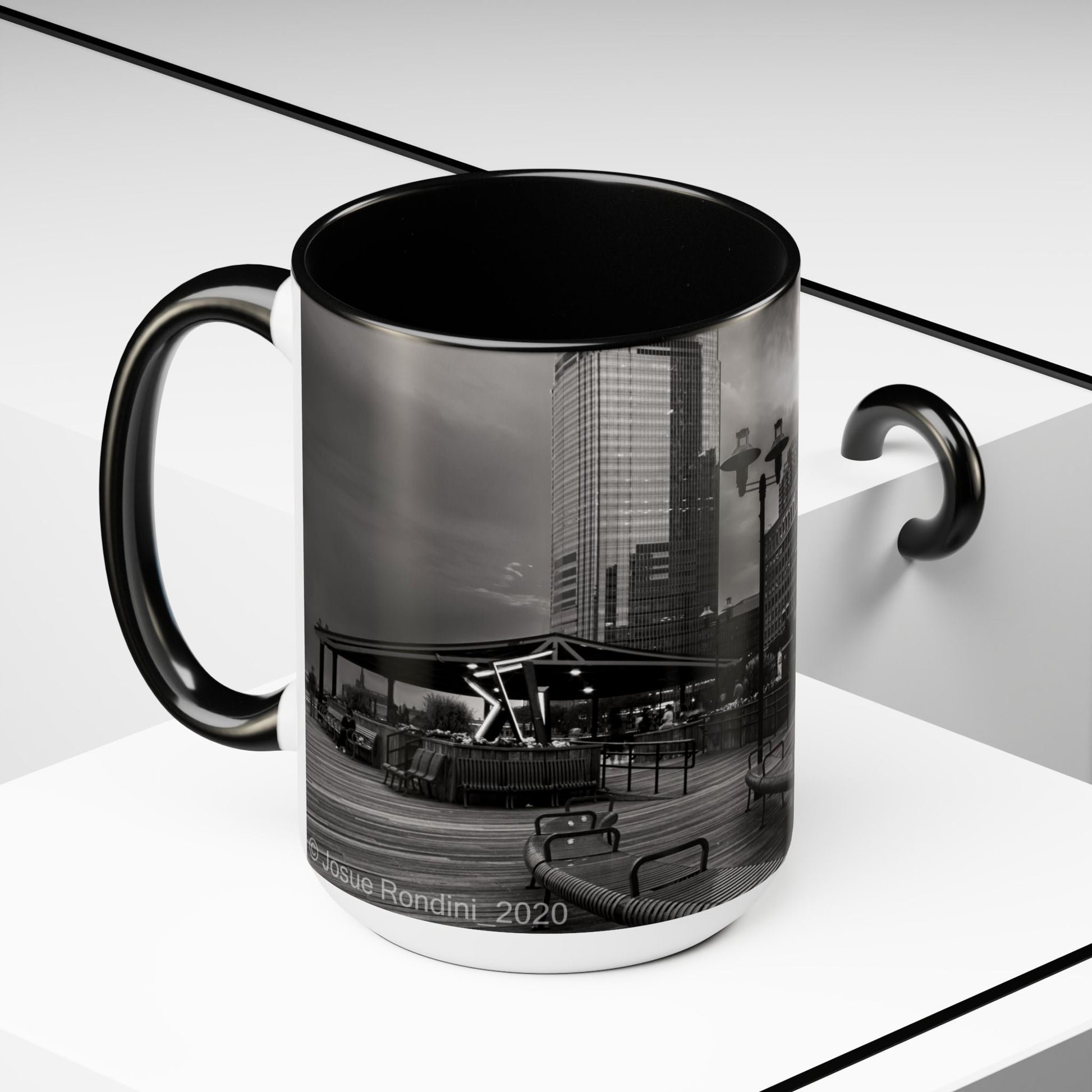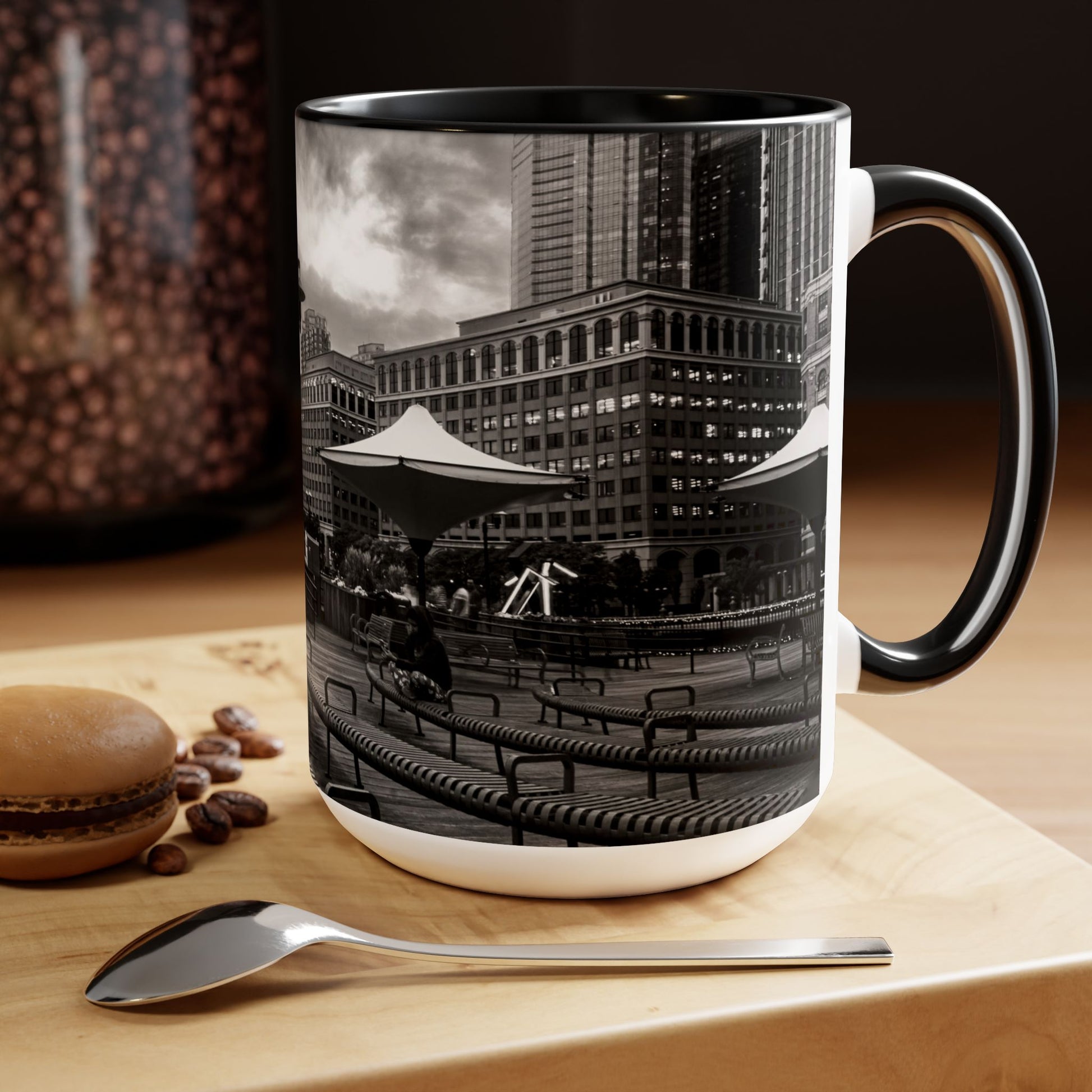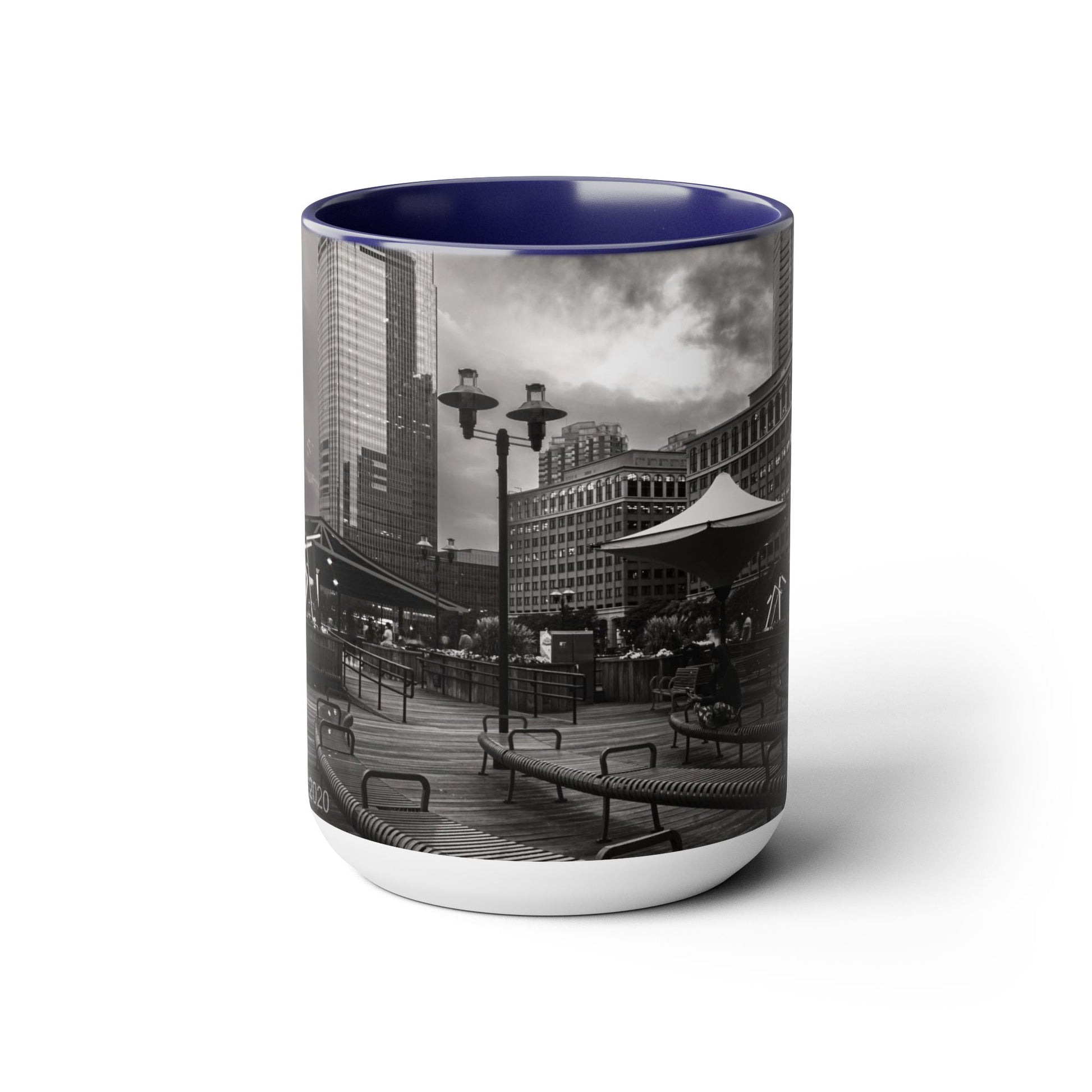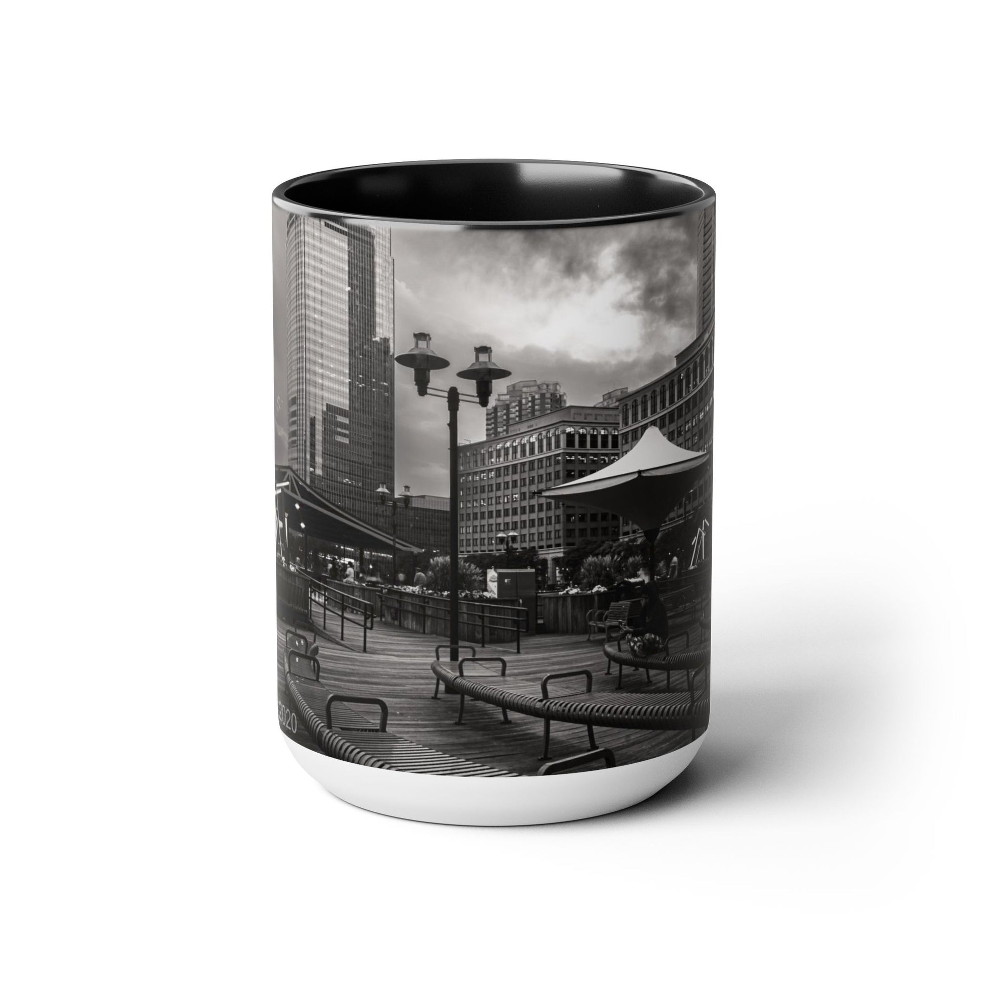 Two Tone 15oz Ceramic, Coffe Mug, Printed with a High-Res Beautifull Urban Landscape.