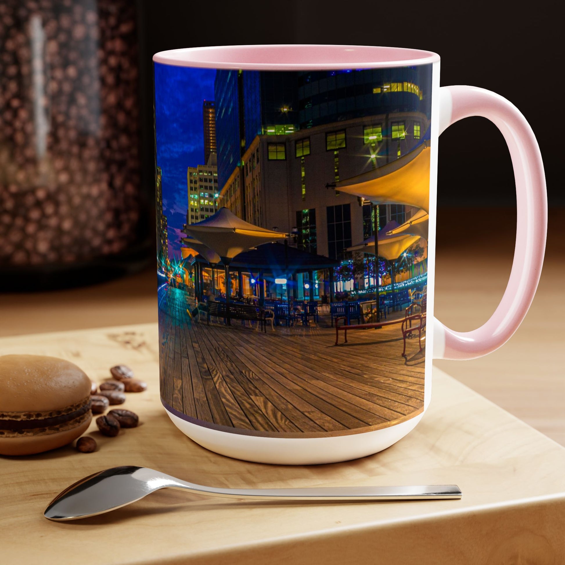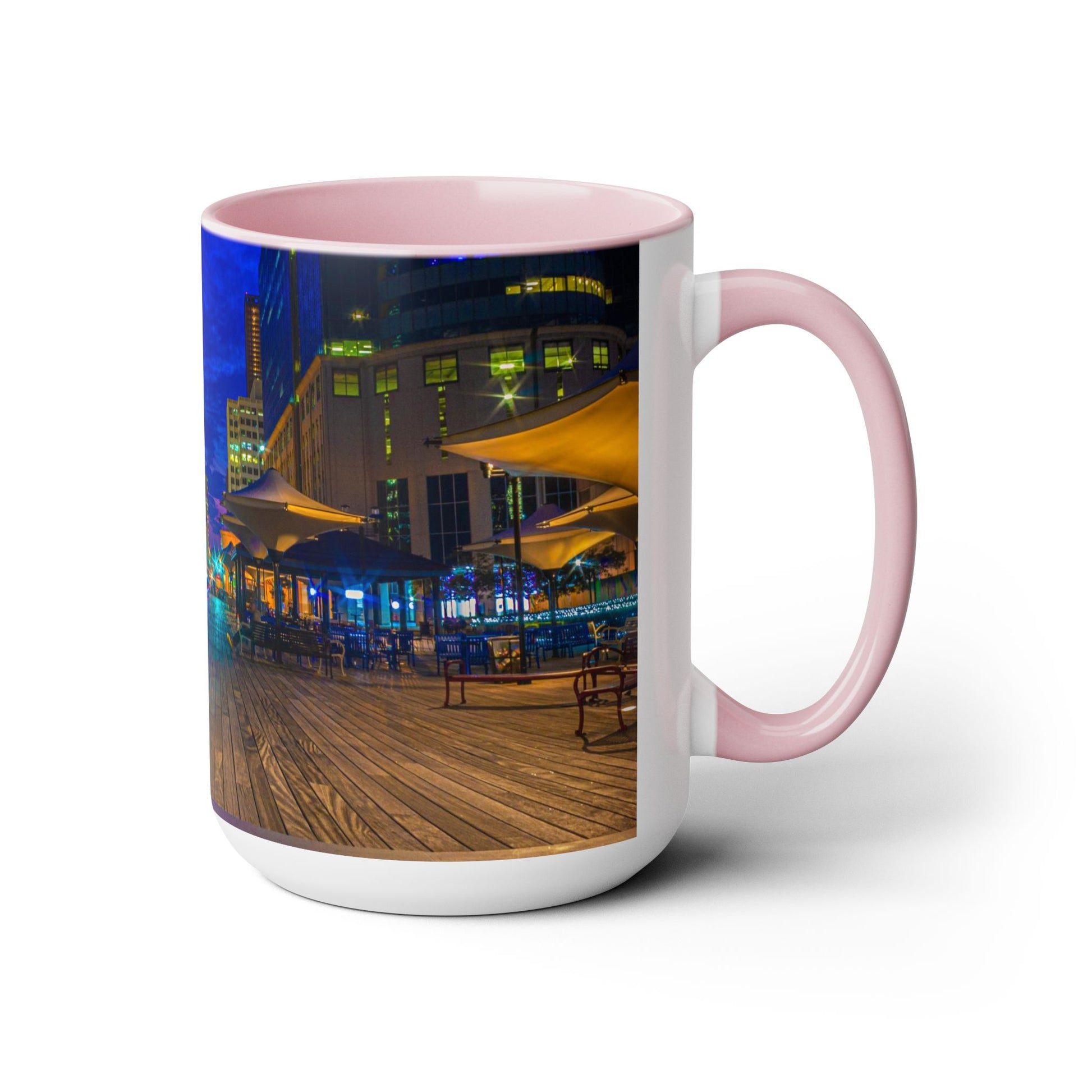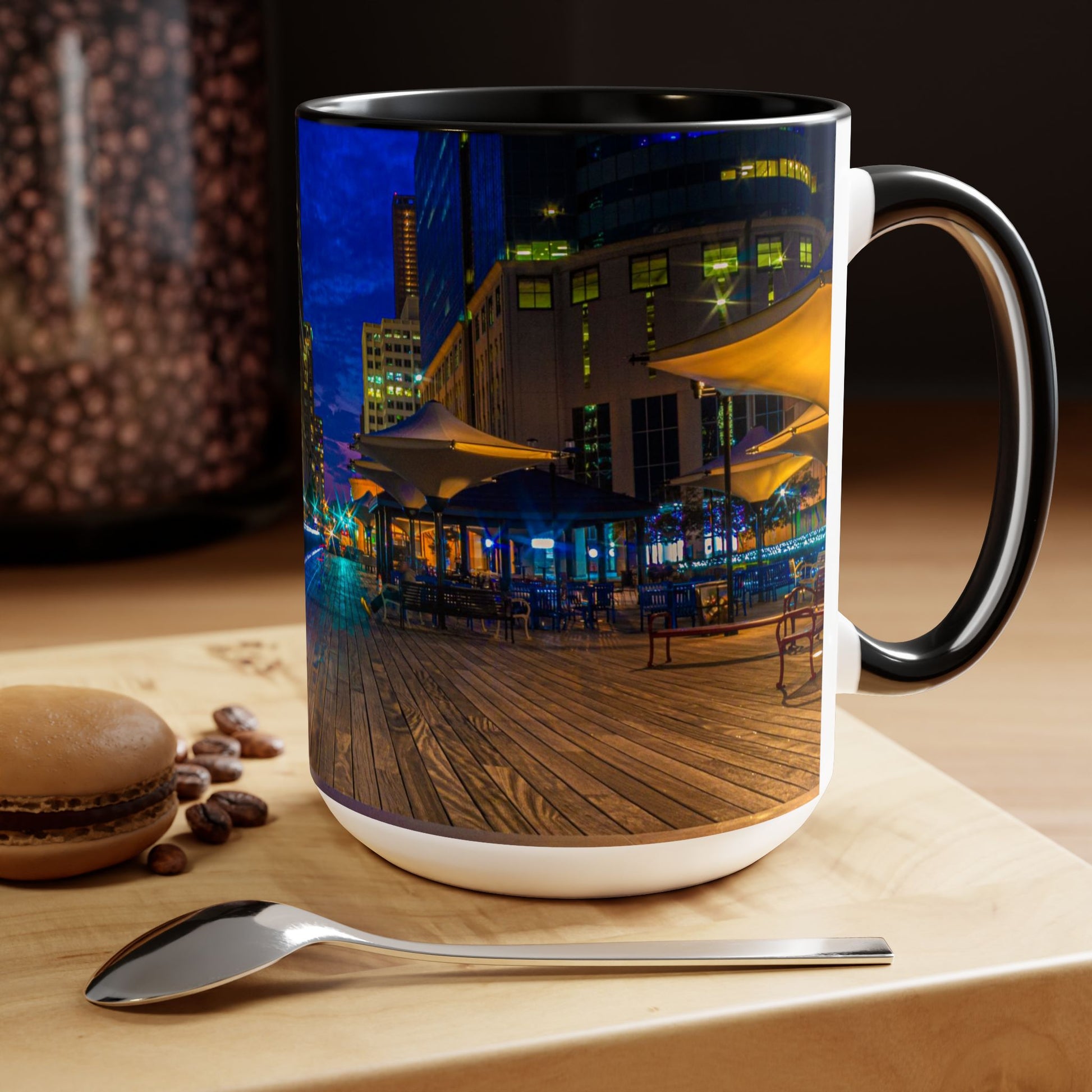 Two Tone, 15oz Ceramic Coffee Mug, Printed with a High-Res Beautiful Urban Landscape from Exchange Place, New Jersey.